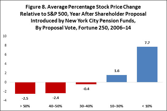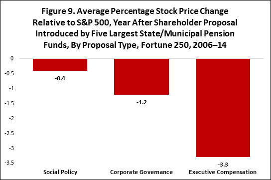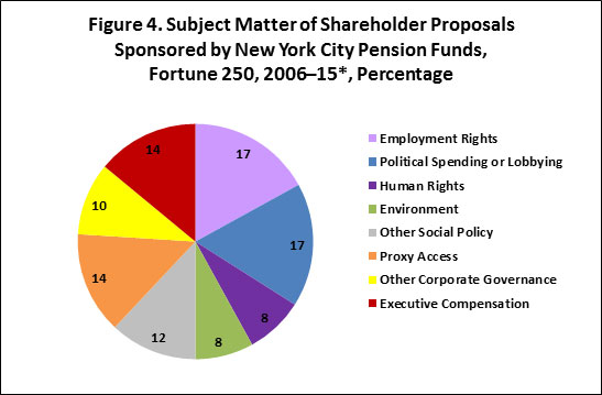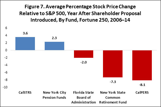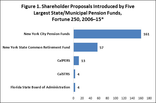 Section I examines such funds� shareholder-proposal activism, over time and by subject matter, as well as voting results. Section II looks at how their shareholder-proposal activism may have impacted subsequent share value in targeted companies. The study concludes that these publicly traded pension funds� shareholder-proposal activism did not tend to create share value; and that the New York State fund�s activism�which traces to 2010 under current comptroller Thomas DiNapoli�has been negatively associated with subsequent share-price movement relative to the broader stock market.