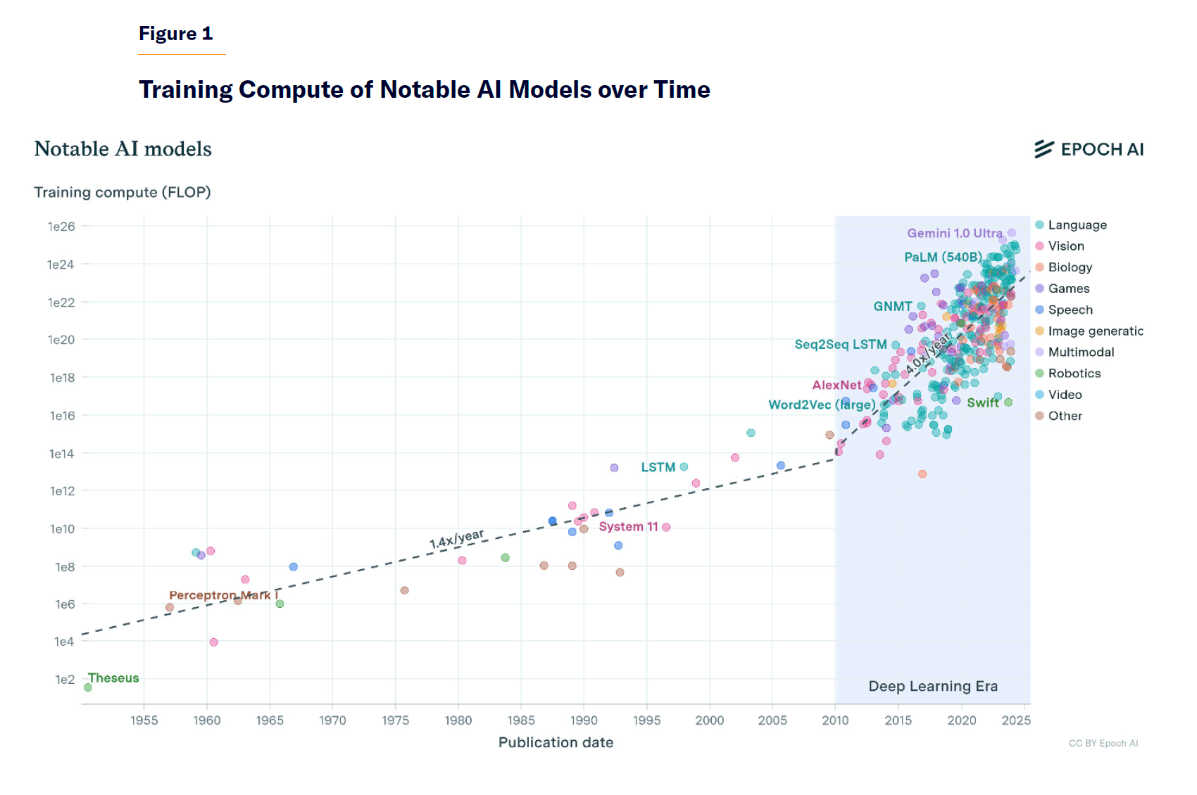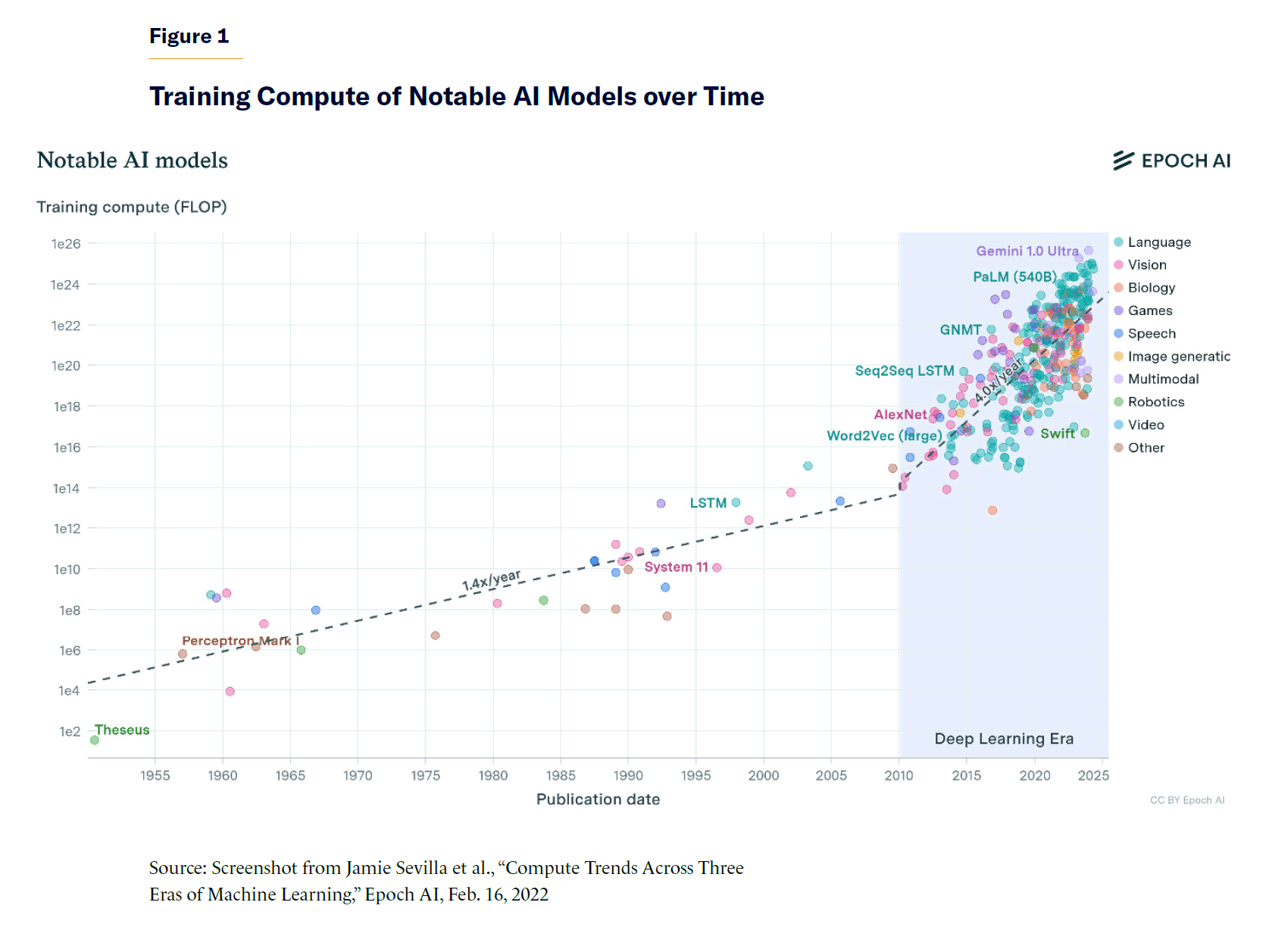 In the mid-2010s, deep learning efforts began to take off with a string of major successes, a decade before ChatGPT brought public attention to the field. AlexNet, a breakthrough model in 2012, was able to recognize images with a far higher degree of accuracy than any earlier system.[15] Now undergraduate computer-science students build AIs that can accurately recognize, for example, whether an image has a dog in it—something virtually impossible before 2010. The technology advanced rapidly from there (Figure 1). In 2016, Google DeepMind’s AlphaGO beat the Go world champion, applying similar techniques to a very different domain.[16] Less than a year later, its successor AlphaZero was able to achieve superhuman play and beat the world champion AIs (and human players) in Go, chess, and shogi within 24 hours.