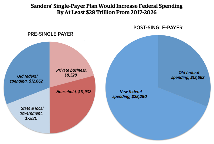Bernie Sanders' Single-Payer Health Care Plan Would Increase Federal Spending By At Least $28 Trillion