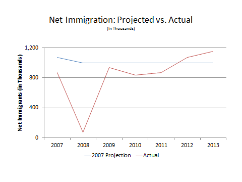 Our sagging economy also caused net immigration to plummet, further depressing the ranks of workers. People are much less likely to arrive within our borders – whether legally or illegally – to join an economy in which it is tough to find work. Recently immigration has recovered, but not nearly enough to replace the immigrants lost from 2007-11.