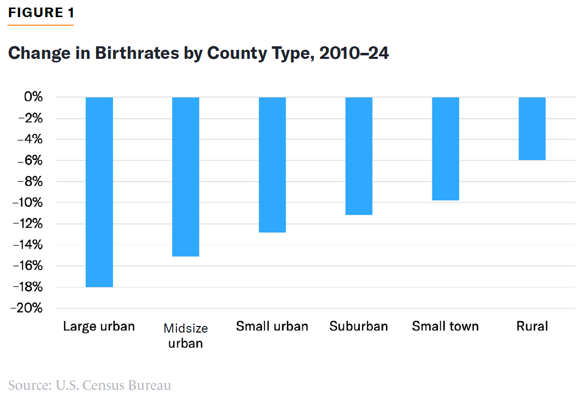 American cities are struggling to attract and retain young families. A growing number of parents are choosing to decamp for suburban and exurban communities, no longer confident that the country’s major cities offer the right combination of affordability, safety, and quality amenities. For those who remain in U.S. urban cores, an increasing number of potential parents are choosing to have fewer children or to forgo having kids altogether.