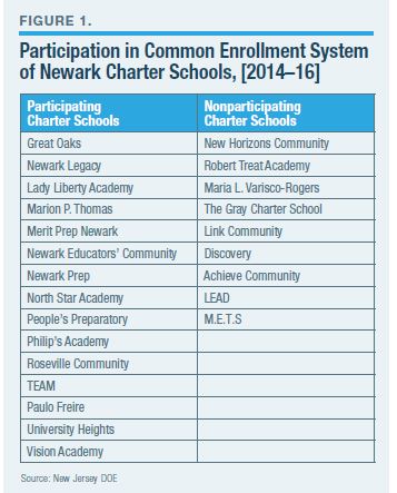 All traditional public and magnet schools were required to participate in the Newark Enrolls process. Charter schools, however, could opt into or out of the system. Figure 1 shows which schools participated in 2014–15 and 2015–16. The causal estimates in this report apply only to charter schools that participated in Newark Enrolls.
