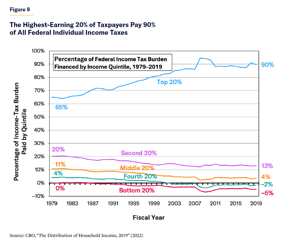 The conspiratorial populism that characterizes modern politics often suggests that virtually all government policies are designed to benefit the wealthy at the expense of everyone else. The tax policy version of this view is that wealthy families pay less in taxes than the middle class. This narrative is very common but spectacularly false.