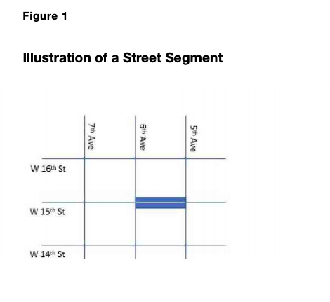 Using these data, we implement a straightforward method in which crime counts are summed for each street segment in the city. In this analysis, there are 83,547 [6] street segments, according to NYC OpenData. It would not be possible to use a spatial unit smaller than the street segment because the crime report data are coded to the street-segment center line and do not provide address-level information. At the same time, street segments have become the most commonly used geographic unit for studies of crime concentration (Lee et al., 2017) because they can be seen as behavior settings (see Wicker, 1987; Weisburd, Groff, and Yang, 2012; Weisburd, Groff, and Yang, 2014) and have well-defined and objective boundaries. Moreover, the use of street segments minimizes the errors likely to develop from miscoding of addresses in official data (see Weisburd and Green, 1995; Klinger and Bridges, 1997; Weisburd, Groff, and Yang, 2014). Figure 1 illustrates what we mean by a street segment in reference to an array of streets in a street grid.