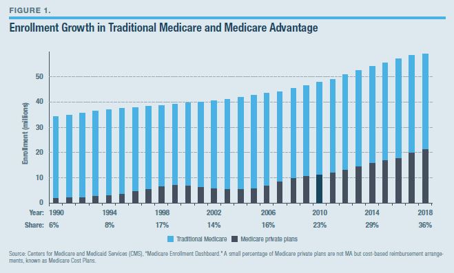 Medicare funds health-care services for 60 million elderly and disabled Americans. Of these, 39 million receive coverage through a plan known as “Traditional Medicare” or “Medicare Fee-for-Service” (MFFS) that the federal government administers directly. Increasing numbers—21 million in 2019—enroll in Medicare Advantage (MA), choosing Medicare coverage from competing plans managed by private insurers.