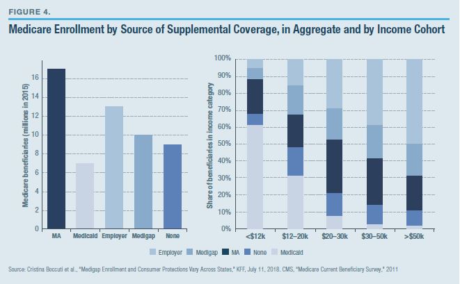 Medicare supplemental coverage is highly fragmented by income (Figure 4):