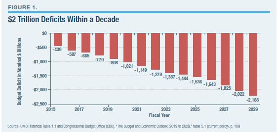 Budget deficits are on pace to soon exceed $1 trillion, on their way to $2 trillion within a decade—or higher, if interest rates rise. This deluge of debt will bring staggering interest costs to taxpayers, less investment, and a weaker economy. Yet a partisan White House and Congress pander to a polarized electorate that demands even more tax cuts and spending hikes. It is time for elected officials to take responsibility and practice leadership on this issue. That requires leveling with the American people about the dangers of rising deficits—and working together across parties to make the difficult decisions to avert an economic calamity. Past generations of lawmakers have shown the blueprint to bipartisan problem-solving. Today’s partisan lawmakers must become leaders and work together for economic sustainability.