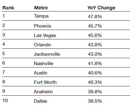 Metro Home Price Growth, May 2021–May 2022[6]