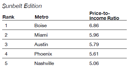 Given local incomes, the priciest places in America outside California and New York are now cities like Austin and Miami.[24] The fastest-growing home prices during the Covid-19 pandemic were in such places as Boise, Phoenix, and Salt Lake City.[25] Nashville, Tennessee, topped the nation during this period for the fastest-selling homes in the nation.[26] Home value growth in 2021 exceeded the median salaries in nearly every major Southern and Mountain West metro in America.[27] And today, inflation is most intensely felt in Sunbelt cities like Phoenix, Miami, and Tampa—outpacing the national rate of 8.5% in July 2022—mostly due to rising rents brought on by increasing migration.[28]