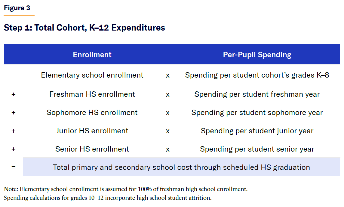 The methodology is demonstrated in Figures 5 and 6, which show the calculations for a hypothetical high school class graduating in 2013.