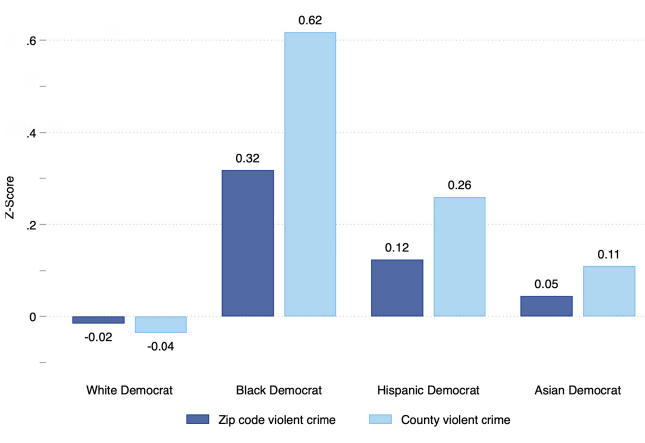 Violent-Crime Levels in Zip Codes and Counties of Democrat Respondents, by Race/Ethnicity