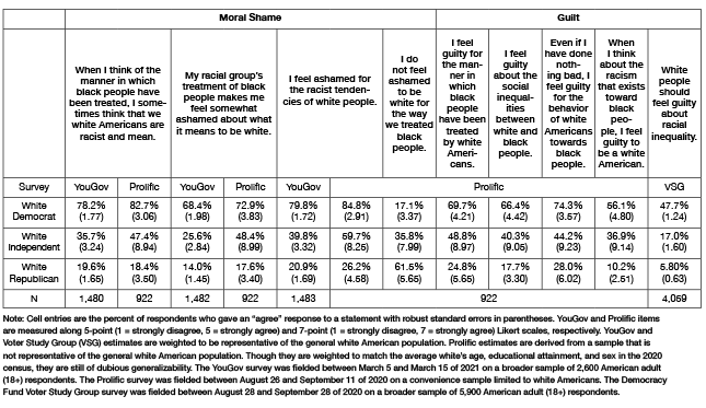 The Prevalence of Expressions of White Moral Shame and Guilt by Party ID