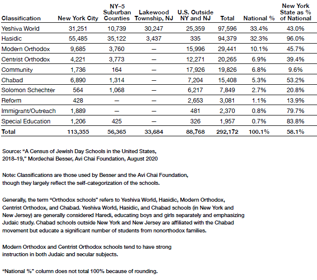 Enrollment in Jewish Day Schools by Classification, 2018–19