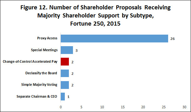 - Proxy-access proposals have been less likely to receive majority shareholder votes: four of ten proxy-access proposals coming to a vote so far in 2016 have received majority support, down from 67 percent in all of 2015.