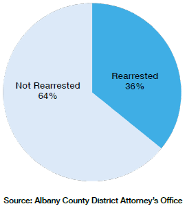 Almost 85% of cases originally brought to the youth part were removed out of the adult court, either with a direction that the defendant appear: (1) for “adjustment consideration” before the family court intake office of the county Department of Probation; or (2), absent such direction, that the defendant appear before the family court for the origination of delinquency proceedings.Albany also tracked the recidivism rate among its most violent criminal youths. To figure this out, the DA looked at the 158 individuals who had been arrested as a violent adolescent offender (AO) between October 2018 and October 2022. A total of 57 were rearrested as an AO or an adult, including 35 for committing another violent crime (Figure 4).