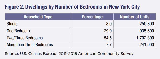 Ultimately, these recommendations aim to increase the diversity of housing options available in NYC and to facilitate the construction of units that are sized according to the needs of the city’s shifting demographics. In NYC and other large cities, this means increasing the amount of studio and one-bedroom units for the increasing population of singles and childless couples.