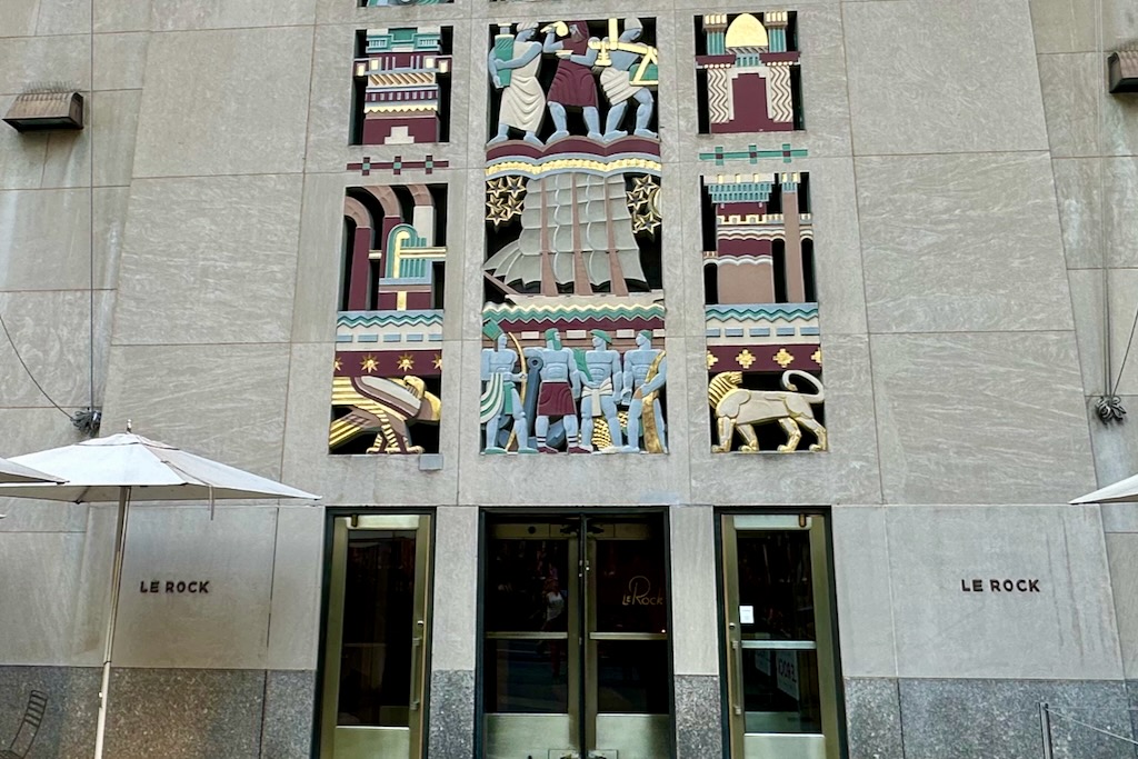 The bar at Le Rock in Rockefeller Center (45 Rockefeller Plaza) is a gem of the restored Rockefeller Center, a glorious Art Deco hideaway where you can contemplate the best of 20th Century urbanism without shelling out for a full expensive meal. Have a glass of wine and try the seasonal strawberry vacherin while they've got it.