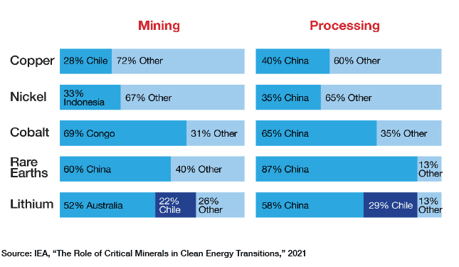 The nature of geopolitical dependencies for energy minerals stands in contrast to the state of play for the hydrocarbons that fuel more than 80% of global economies. There are far more suppliers of hydrocarbons, and the dominant players have only a fraction of the market share compared with the markets for energy minerals. And of course, the U.S. is a net exporter of hydrocarbons.