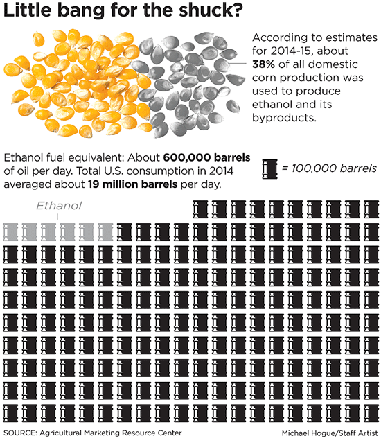 “Ethanol distilleries are consuming about 40% of all domestic corn output... And it took roughly four decades of mandates and subsidies for the corn-ethanol industry to grow to that size.”