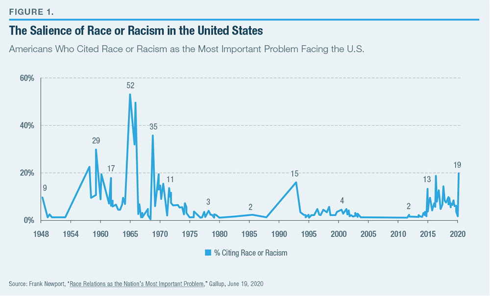Source: Frank Newport, “Race Relations as the Nation’s Most Important Problem,” Gallup, June 19, 2020