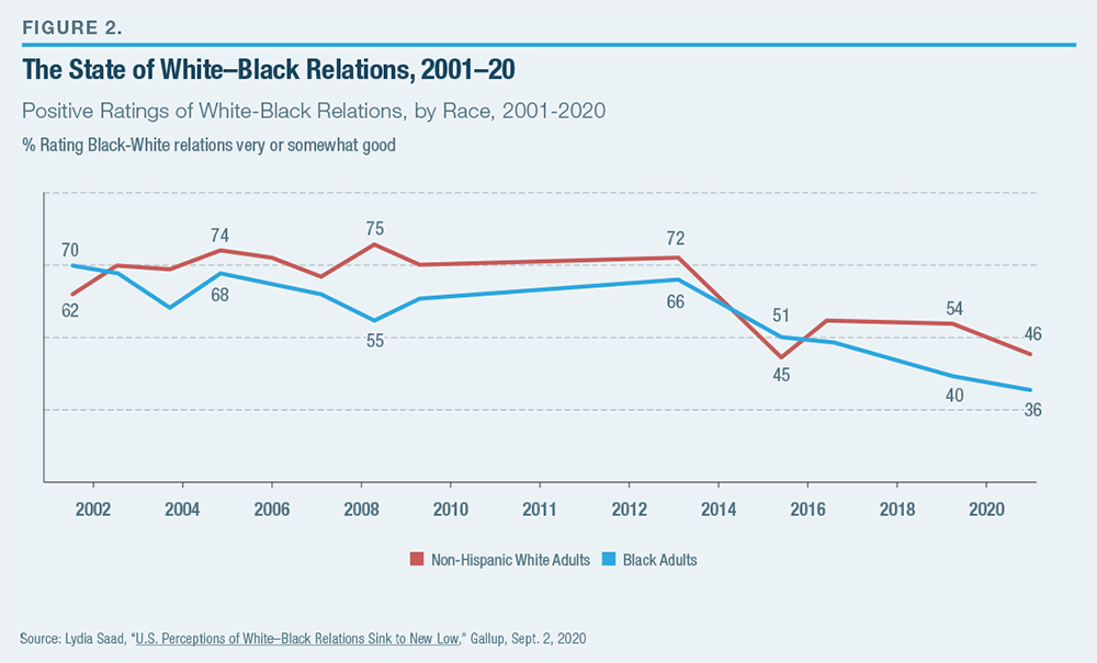 Source: Lydia Saad, “U.S. Perceptions of White–Black Relations Sink to New Low,” Gallup, Sept. 2, 2020