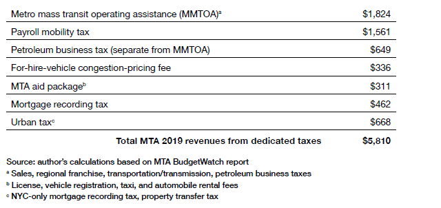 Metropolitan Transportation Authority Dedicated Taxes & Fees, 2019 (in millions)
