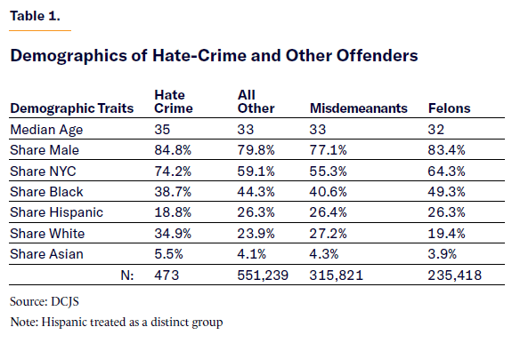 Hate Criminals and Other Criminals: New York State Data