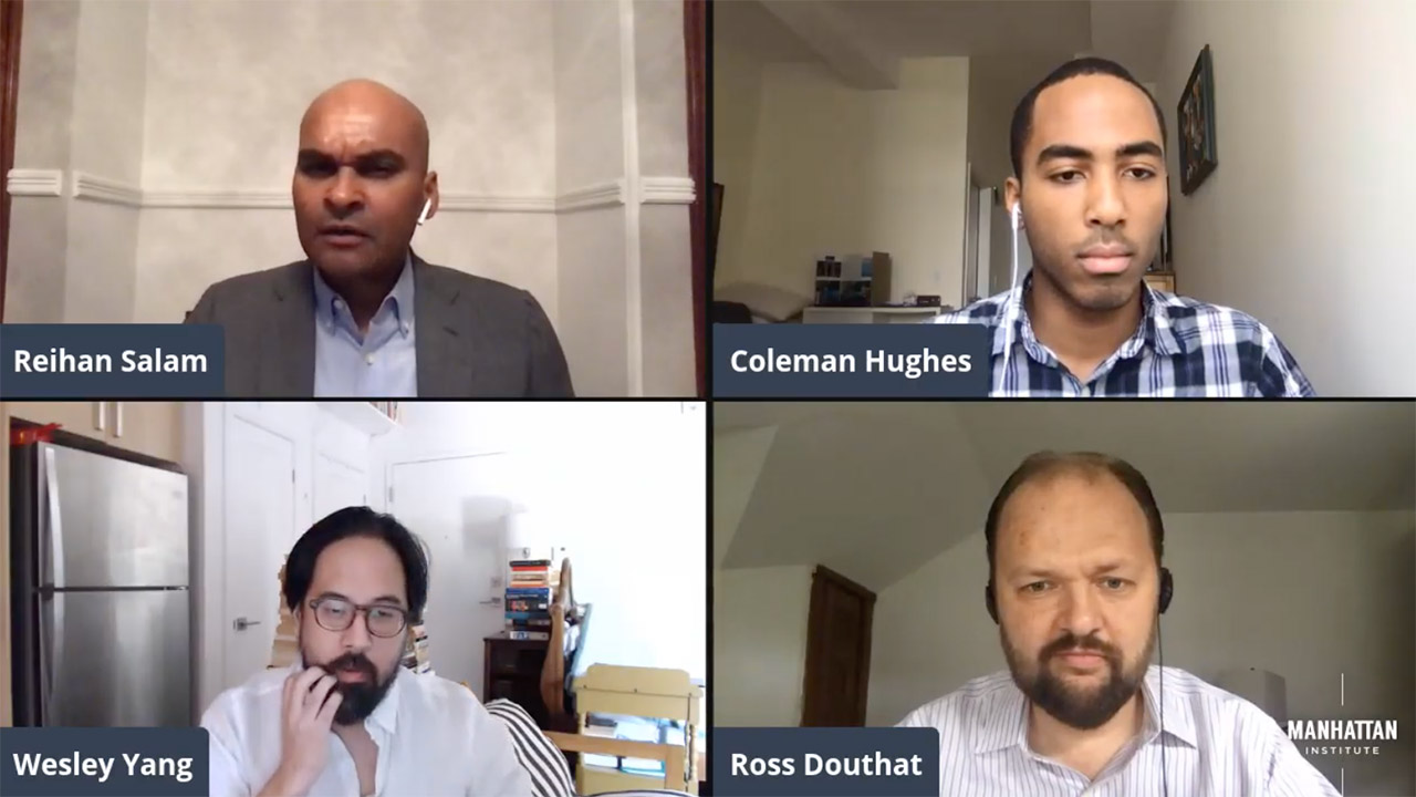 We're joined by Coleman Hughes, a Fellow at the Manhattan Institute and contributing editor at City Journal, Ross Douthat, an opinion columnist for the New York Times and author most recently of, The Decadent Society, and Wesley Yang, a columnist for Tablet magazine, and the author of, The Souls of Yellow Folk.